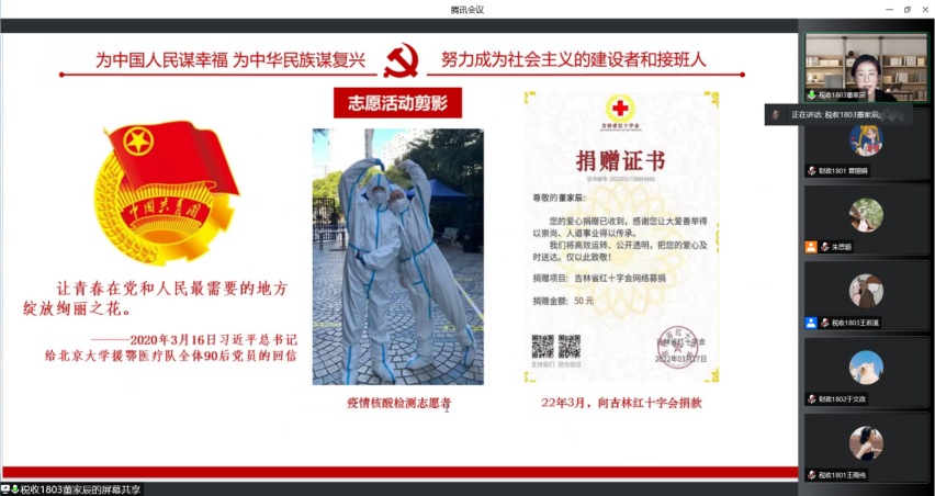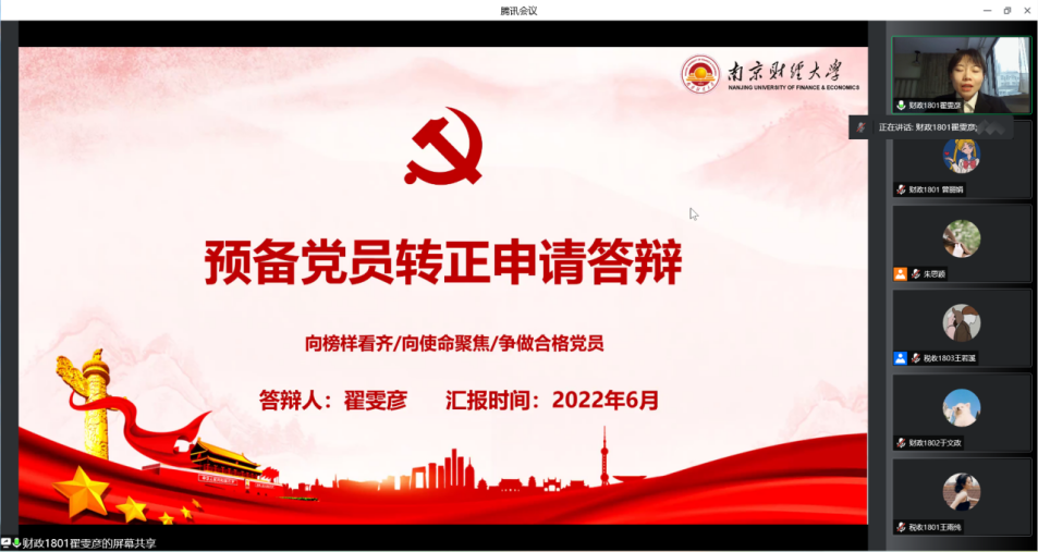 本科生第一党支部的8位党的发展对象也列席了此次答辩会,并从对党的认识及入党动机、现实表现以及未来发展规划等角度阐述对于入党的想法及自我发展目标。