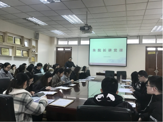 院长暨本科生第二党支部政治辅导员朱军教授在德经楼408会议室作专题党课,支部党员及发展对象共35人参加了本次党课学习,党课由本科生第二党支部书记翟文静主持。
