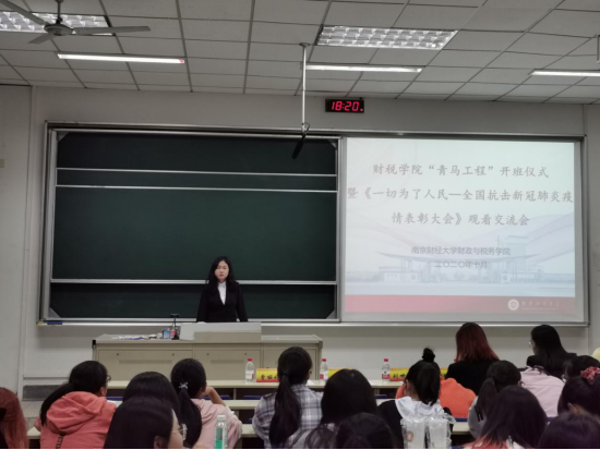 (财税学院辅导员贾晓燕老师在主题班会上总结发言)