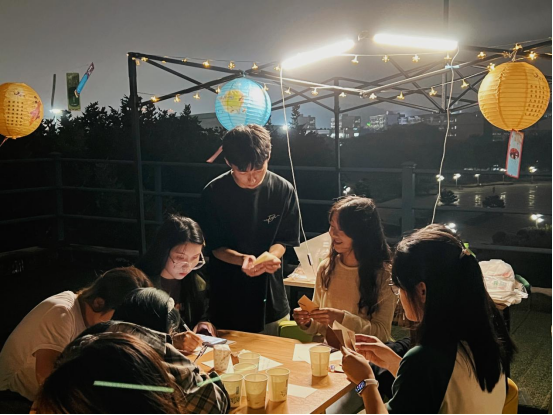 “举头望明月,低头思故乡。”中秋赏月是必不可少的一个环节。同学们围坐成一个圈,静静倾听分享者诉说他们家乡的中秋习俗。少数民族同学们也分享起属于自己民族独特的中秋习俗,一位苗族同学表示,每逢中秋之夜,苗族群众沐浴着如丝如缕的月光,吹奏着悠扬的芦笙,跳起苗家歌舞,青年们在“闹月”活动中互相寻找意中人,互相表白要像月亮和清水一样心地纯洁明亮,永结百年之好。蒙古族的“追月”、广西壮族“祭月”、高山族“赏月”······各地的特色风俗让大家无不动容。