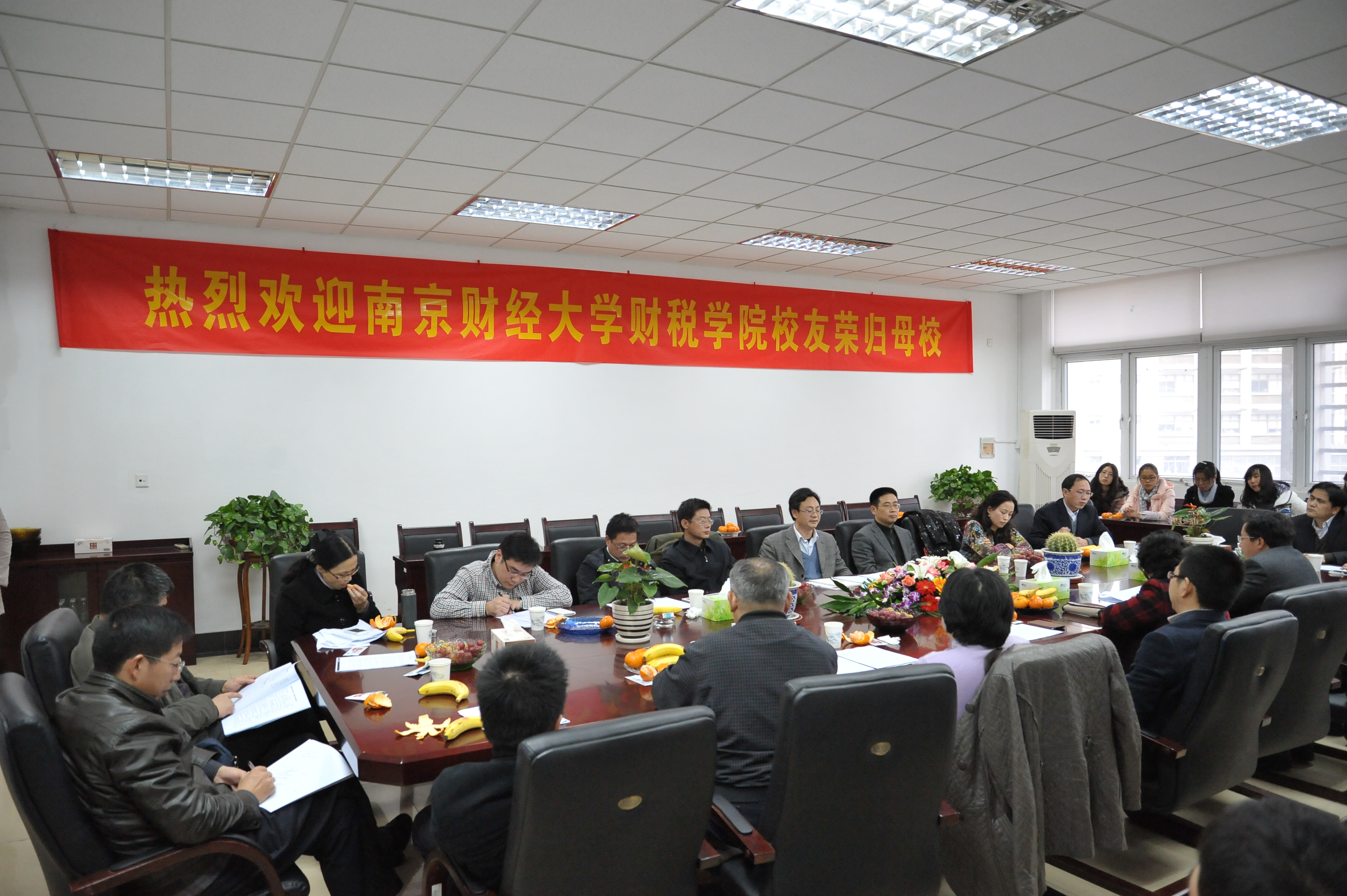 财税学院校友座谈会在此召开。本次会议由学院党总支书记周晓飞同志主持,学院全体党政领导、部分教师代表、各年级学生代表、来自社会各界的数十位校友参加了座谈会。