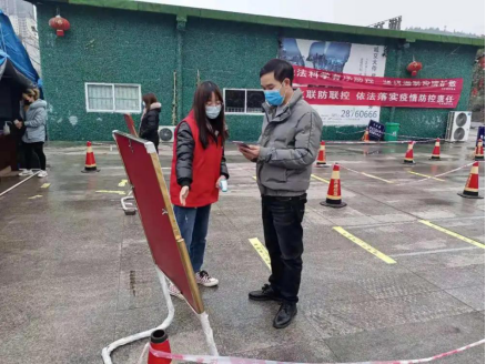 “一次指引+一个行程码=正无穷的安心团圆”,财政2001班陈青青同学在抗击疫情期间主动申请成为志愿者,帮助指引过路行人检测体温和出示行程码,用自身的实际行动致敬雷锋同志。陈青青同学说;“疫情之下,我作为一名共青团员,更应该有一份光发一份热,哪怕自己力量有限,但对于需要帮助的人来说也是温暖人心的。”