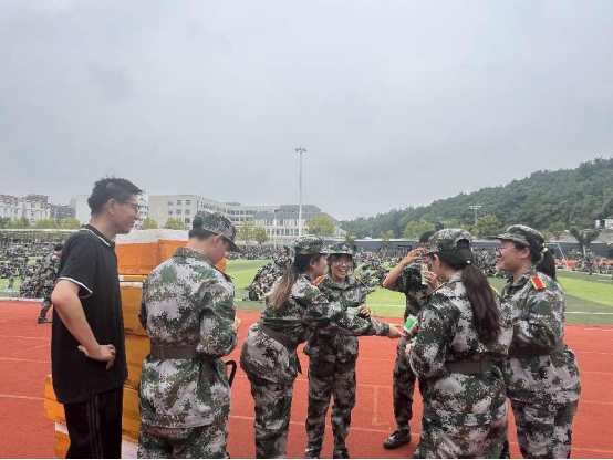 与此同时,南财大一新生和大二同学们正在烈日灼灼下进行军训,学院老师们也来到军训现场为学生们送来了丝丝凉气的绿豆冰沙,在炎热的夏日驱赶着灼人的暑气,和同学们进行一场“双向奔赴”。操场中弥漫着绿豆清香,每一口都是满满的甜蜜和凉爽,仿佛能把所有的疲惫和炎热都一扫而空。在休息时间,同学们无拘无束的坐在草地中,享受着冰凉的绿豆沙,分享彼此的见闻,微风抚走脸上的汗珠,青春的笑颜比骄阳还耀眼。