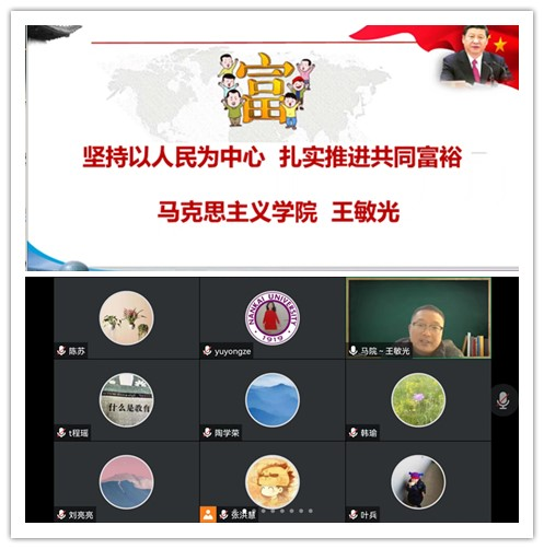 马克思主义学院王敏光教授作了题为“坚持以人民为中心 扎实推进共同富裕”的讲座。本次讲座由财政与税务学院党委书记陈苏主持。学院全体教职工线上参加讲座。