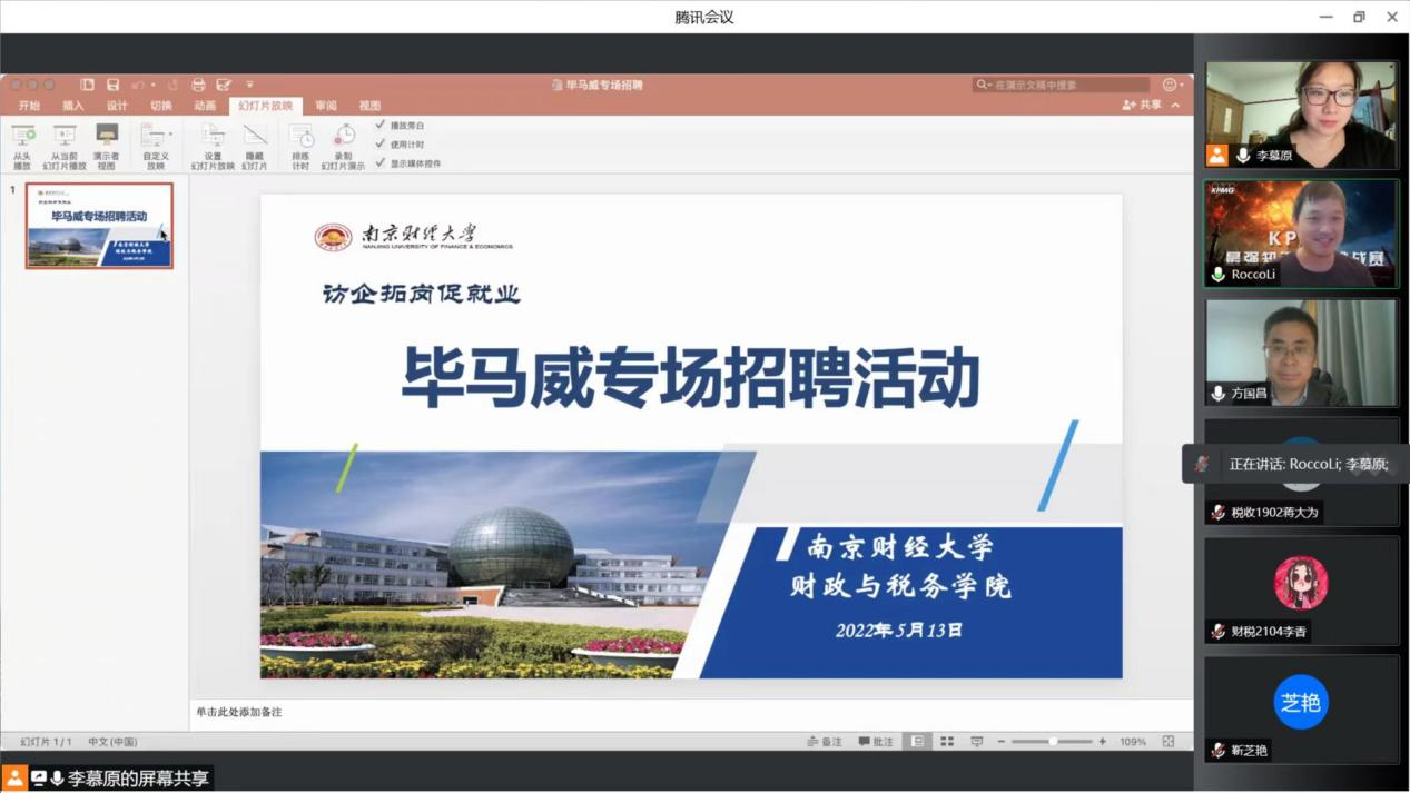 与四大会计师事务所之一的毕马威公司举办了访企拓岗促就业专项行动。活动以线上会议的形式开展,财税学院党委副书记李慕原、副院长方国昌、毕马威全国校园招聘负责人李延均先生以及财税学院部分本科生、研究生参加了专项活动,活动由李慕原副书记主持。
