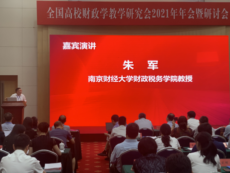 院长朱军教授、蒋诗雨博士2位老师参与了会议。朱军在上午的主会场做了题为《“系统平衡财政观”是财政基础理论研究的新创新》告。
