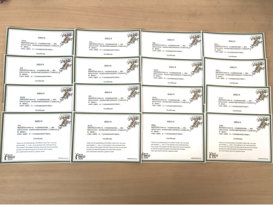 的同学们开展“植树造林·师生同荫”活动,以老师的名义通过“百万森林计划”为祖国西部地区捐赠了一片树林,帮助西北部贫困地区改善生态环境的同时,将爱与奉献以新的方式传递下去。