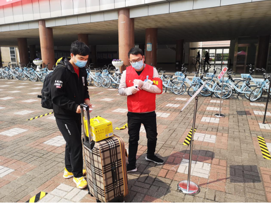迎来47位2020届毕业班首批返校学生,学院青年教工党员刘家成、张海峰、杨义武作为党员教师志愿者,为首批返校学生提供志愿服务。