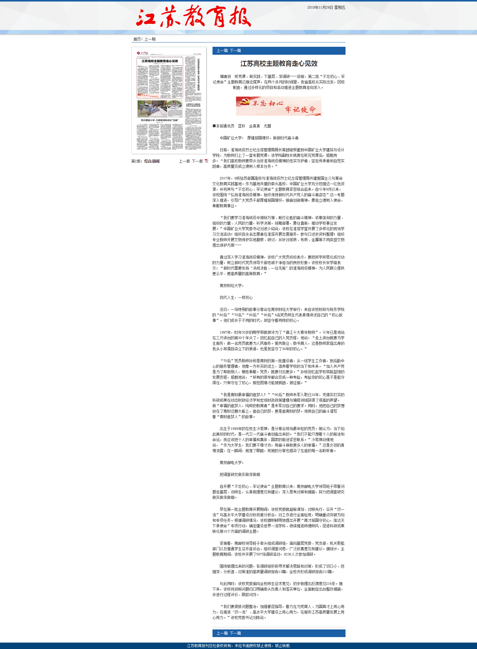 11月29日《江苏教育报》第二版,刊登了题为《江苏高校主题教育走心见效》的文章,文中报道成人动漫