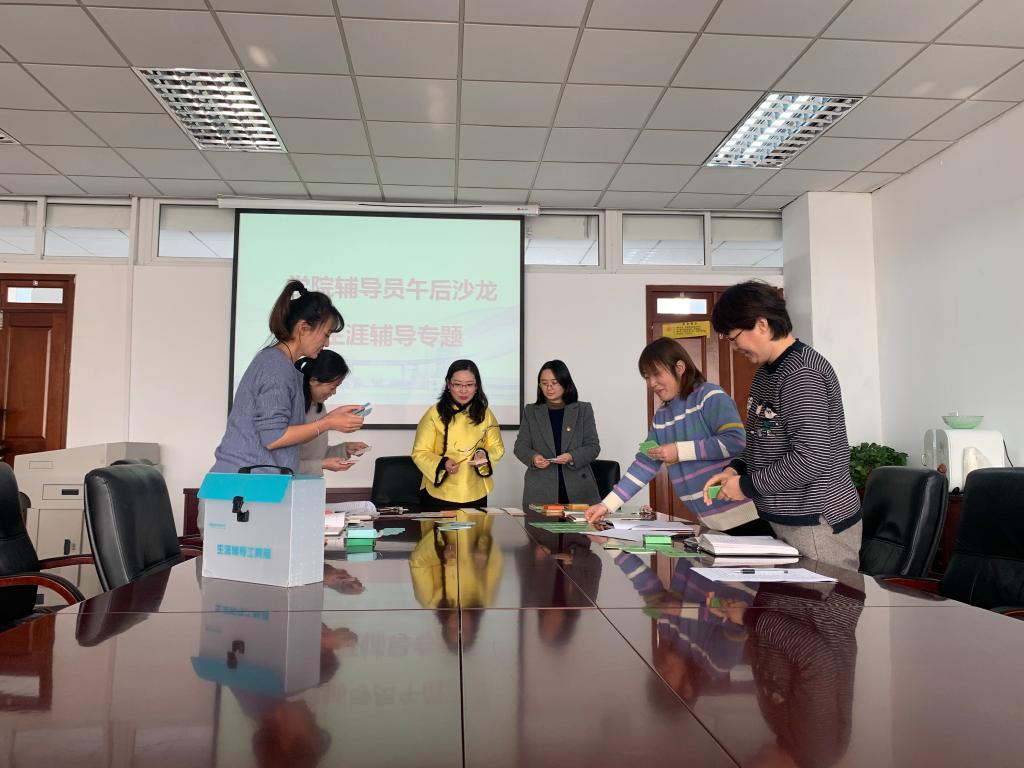 在沙龙现场李慕原带领大家体验了“职业生涯规划分类卡”的使用,通过对所带班级真实典型案例的讨论,模拟了测评和辅导过程。陈苏同志表示,作为辅导员应从树立目标、绕开发展陷阱、把握关键阶段、结交人生导师等方面开展大学生涯规划指导工作。希望各位辅导员老师结合自身兴趣专长,进一步加强学习思考,深入研讨交流,努力提高生涯规划指导能力,更好地指导好大学生的成长发展。