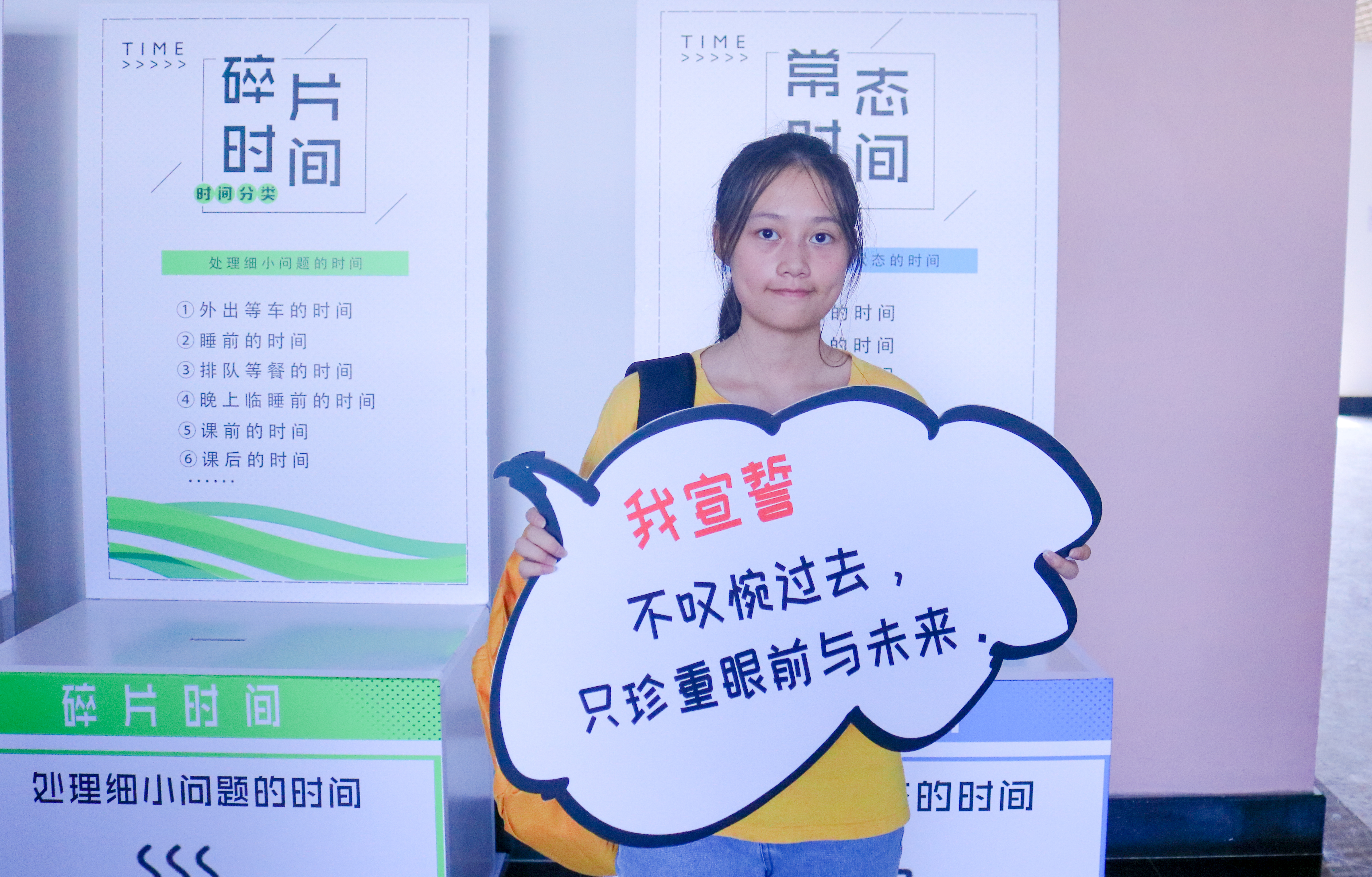 以“时间规划”为主题,结合垃圾分类的时代热点,为新生上好入学第一课——如何高质量的规划大学的时间。“九百格人生管理术”开学第一课是想时刻提醒新生:进入大学时间规划变得尤为重要,只有正确规划时间,珍惜当下才能高质量的走完大学四年。配合今年的迎新主题,学院推出了时间规划分类盒子,把时间分为动态时间,黄金时间、碎片时间和常态时间。新生亲自将手中写有各类时间的小表盘投进四个盒子里,完成时间规划的初步分类。同时,新生还领到课后作业《拾光手账》,通过新颖的时间税,每天用应纳税额和实纳税额来评价每一天任务的完成度。用一种“纳税人”的身份,为自己的大学四年负责,做好规划。来自江苏连云港的新生同学解天宇说:“进入大学 ,这是我第一次以这种新颖的方式上课 ,我深感大学时间规划的重要性,相信自己会在今后的大学四年里珍惜时间,不负韶华。”