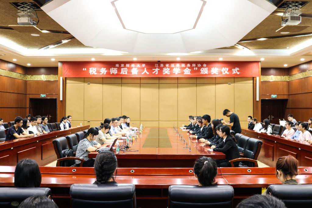 于工科楼会议室举行2019年度“税务师后备人才奖学金”捐赠暨颁奖仪式。江苏省注册税务师协会会长周苏明,副会长于阜宁,办公室副主任徐华敏,成人动漫