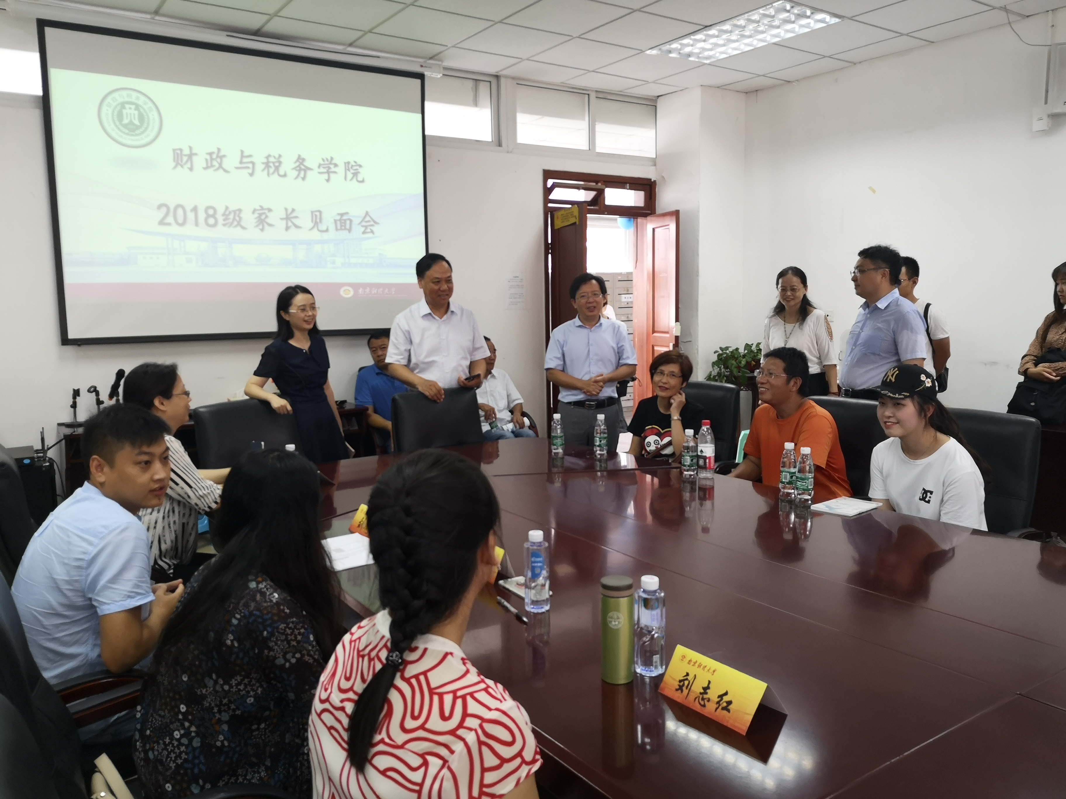 早上8点30分,院领导、系主任和教授们就在院会议室开始了面向新生及家长们的“全天候家长会”,向新生与家长们详细介绍了学院的办学历程、专业建设、师资队伍、人才培养、奖助学金以及学校出国留学项目等情况。针对新生与家长所提出的专业、学业与职业规划的具体问题进行解答。今年的迎新安排除了常规的全天候家长会,学院还于下午14点30,召开了2018级本科生家长见面大会,全体院领导,教授代表、系主任、班主任及辅导员出席了大会。学院师生代表与到场家长做了充分交流,希望双方能够通过更加充分有效的沟通,培养新的财税人才。