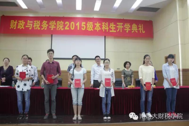 在管理学科楼报告厅举行了2015级本科生开学典礼,学院党委书记张金龙、副院长黄斌、党委副书记陈苏、税务系副主任程瑶、以及财政系教授唐祥来、蔡军、吴美华等出席。开学典礼由党委副书记陈苏主持。