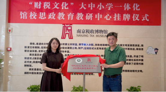 活动现场还举行了“财税文化大中小学一体化馆校思政教育教研中心”挂牌仪式。该中心将以“财税文化”为切入点,以“博物馆思政课”为载体,通过“双师共研、双师共教、双师共评”,共同探讨“大思政课”建设路径。