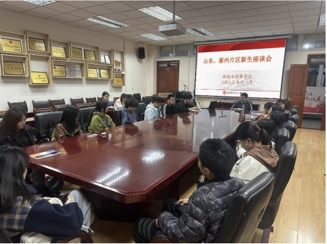 在仙林校区德经楼408会议室召开山东、泰州片区新生座谈会。学院党委副书记王翔老师,学工办以及学院部分教师代表参加座谈会,各学院山东、泰州籍新生代表参加了会议。座谈会由王翔副书记主持。